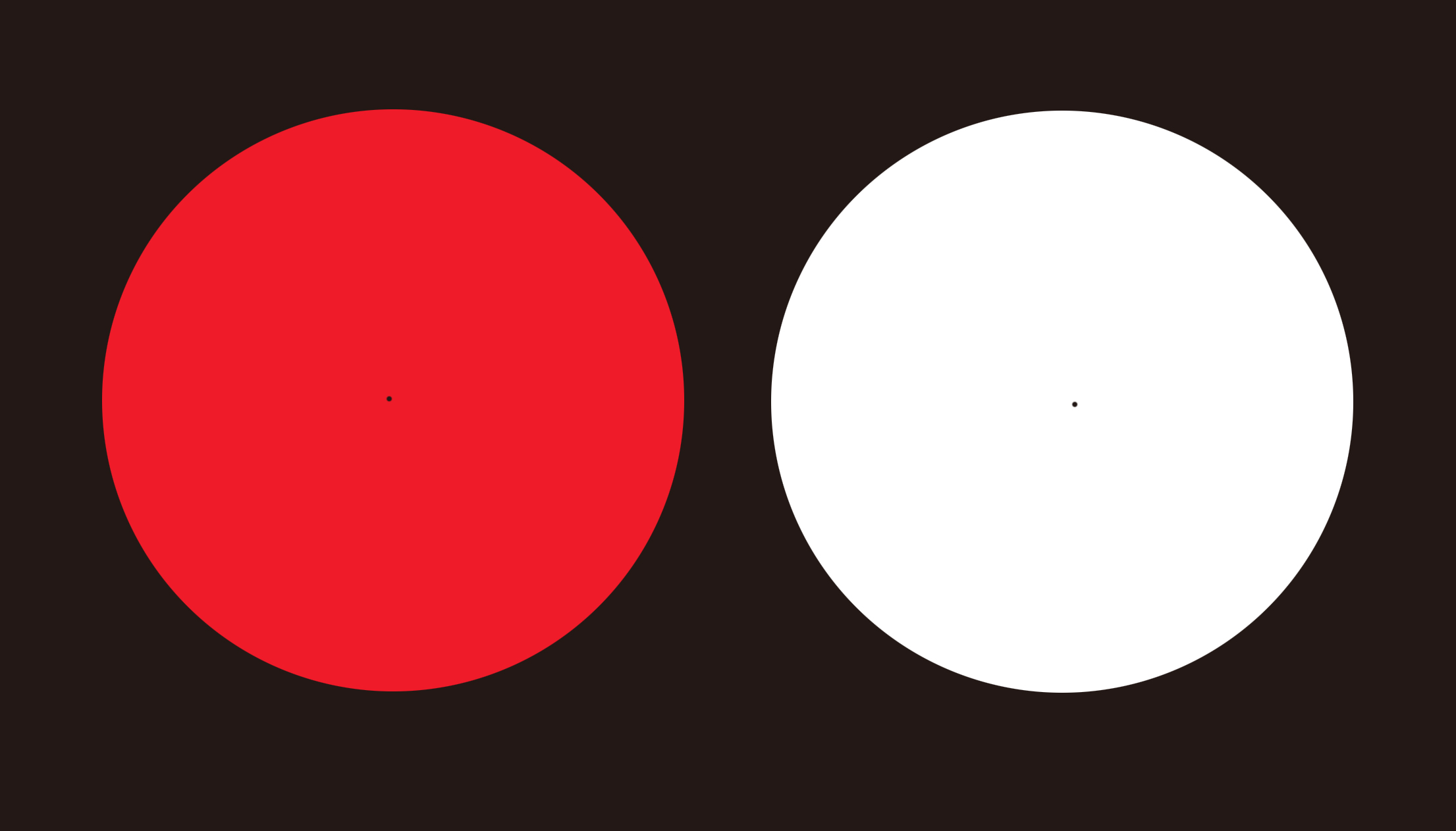 實(shí)際上,藍(lán)色和綠色手術(shù)衣被外科醫(yī)生們采用的主要原因是,這兩種顏色是人的內(nèi)臟以及血液顏色的互補(bǔ)色(色環(huán)中以180度相對(duì)的2種顏色就是互補(bǔ)色)。白色不僅僅會(huì)引起眩光,還會(huì)讓人容易產(chǎn)生一種叫做后像(afterimage)的視錯(cuò)覺(jué)。 那我們來(lái)做一個(gè)神奇的小游戲:你可以盯著下面這張圖看上20秒鐘,然后轉(zhuǎn)向右邊的白色部分,你會(huì)看到什么呢?